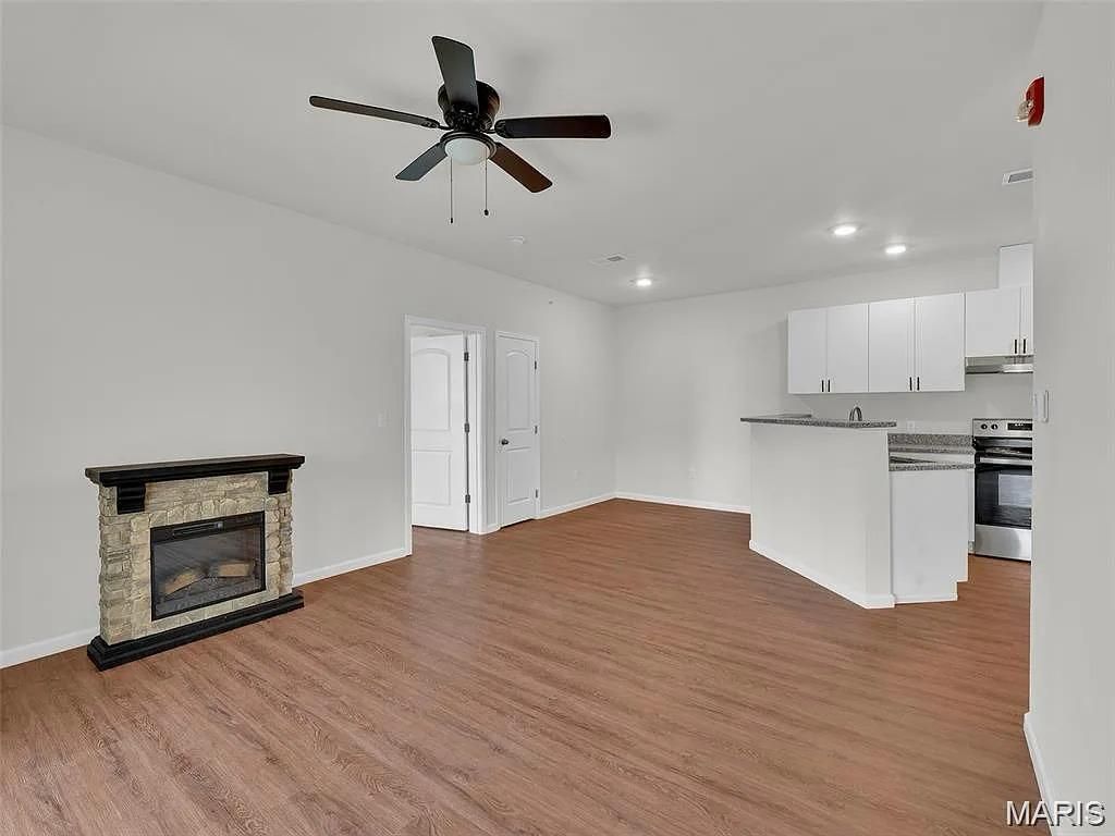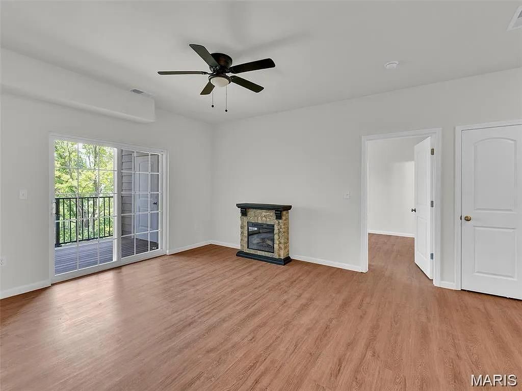 PERFECT for a person looking for a new home or an investor looking for a low maintenance property to add to their portfolio, this 1 year young, 2025 built, 2 bedroom, 2 bathroom condominium is located in the rapidly growing Dardenne Prarie location and sought after Wentzville school district As you walk in you will be greeted with a naturally sunlit open floor plan with luxury flooring throughout. The cozy great room features 9 ft soaring ceilings, canned lighting, double paned doors, contemporary fixtures, an electric fireplace and is accessible to the covered composite balcony perfect for relaxing and offers privacy and beautiful views of trees and extra storage space. The spacious kitchen includes a deep sink and high faucet, 38 soft close custom cabinets with an amazing cooking ventilation built in, beautiful granite countertops, and complete with Whirlpool stainless steel electric range, dishwasher and refrigerator. The separate dining area is perfect for entertaining and has a pantry for additional storage. The master bedroom suite comes complete with a ceiling fan, an full bathroom with adult height vanity and a walk-in closet. Washer and dryer are included for convenience. Fantastic location, jump on the Page extension, near the Hwy 40 interchange, minutes away from Lakeside Shoppes At Winghaven, Chesterfield and Wentzville. HOA ALLOWS RENTALS! Pictures are with the property before tenant moved in.